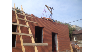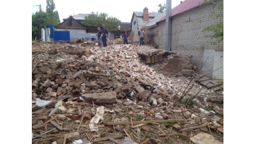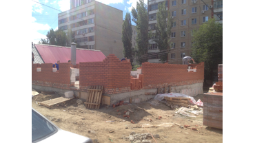 Демонтаж старого здания и возведение на его месте нового. Дом находится на ул. Малая Горная, за Пентагоном