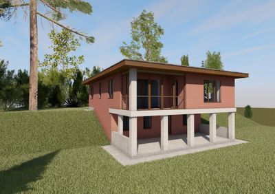 Готовый проект двухэтажного дома общей площадью 149,46 м². Первый этаж цокольный. Стены дома могут быть выполнены из газосиликатных блоков или силикатного кирпича. По плану в доме холл (20,41 м²), топочная (9,26 м²), два санузла (7,13 м², 9,42 м²), тамбур/гардероб (8,20 м²), большая кухня-гостиная (35,90 м²), три спальных комнаты (16,17 м², 12,47 м², 20,66 м²), балкон (8,59 м²) и терраса (41,52 м²).