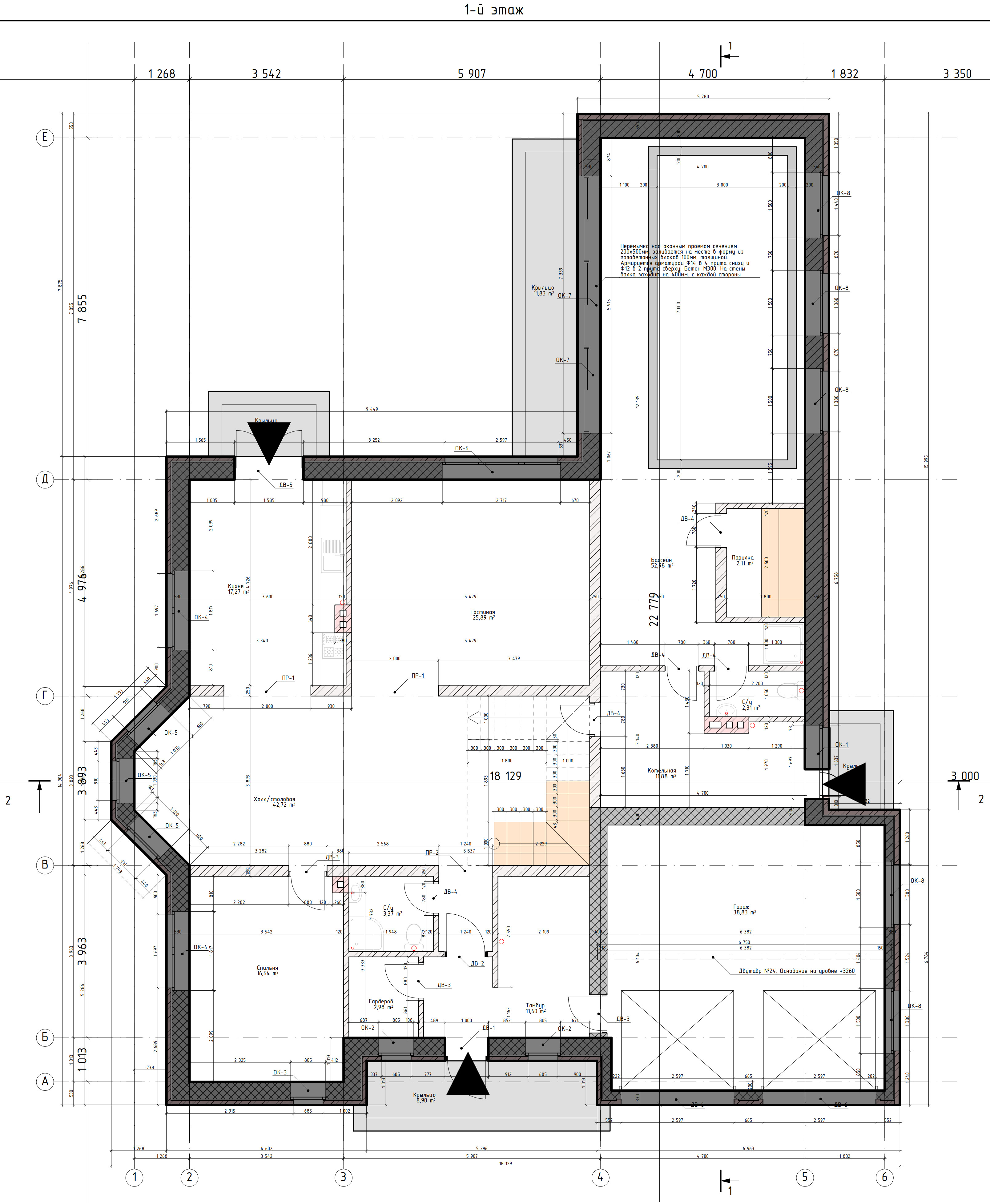 - Высота 1-го этажа: 3 м