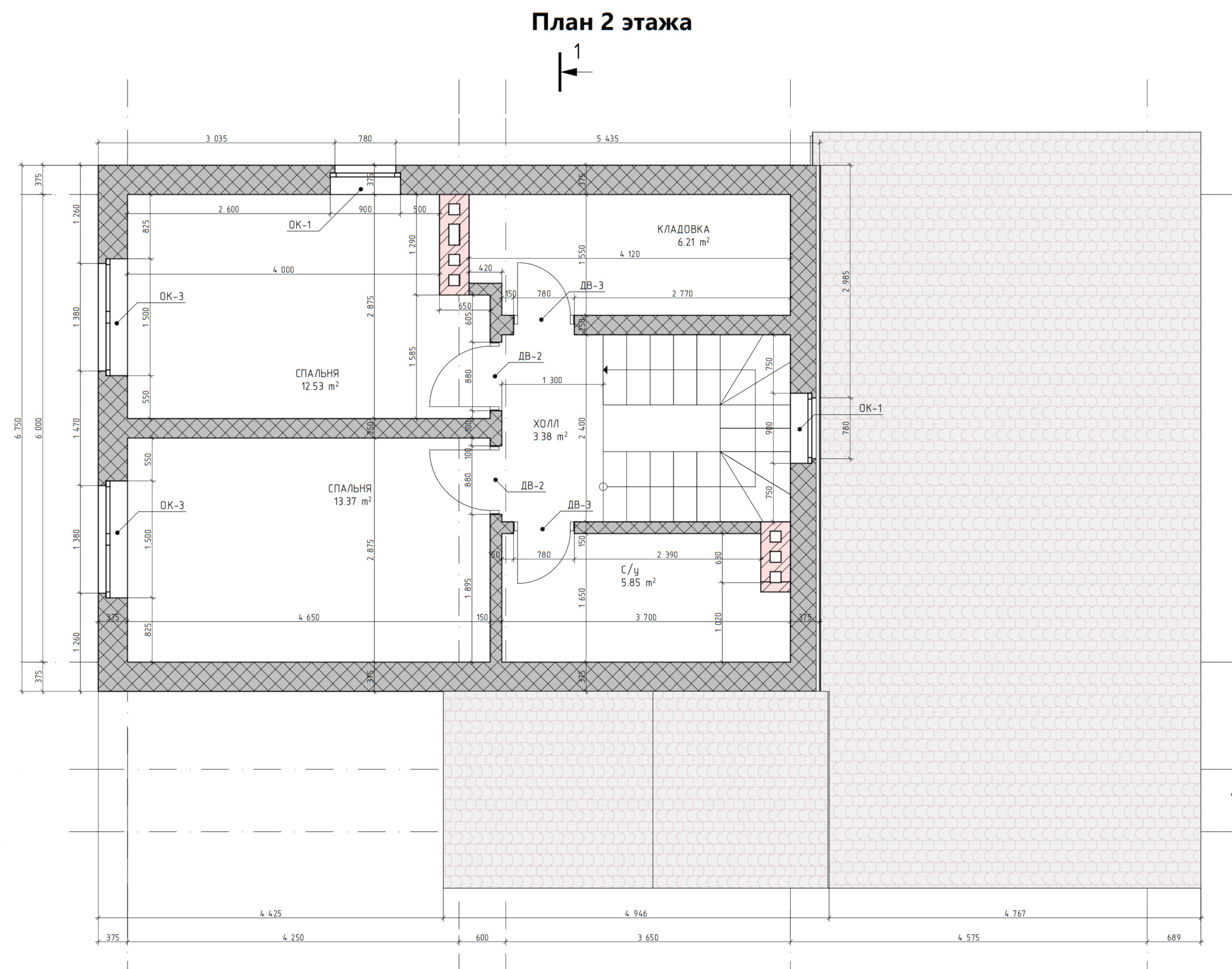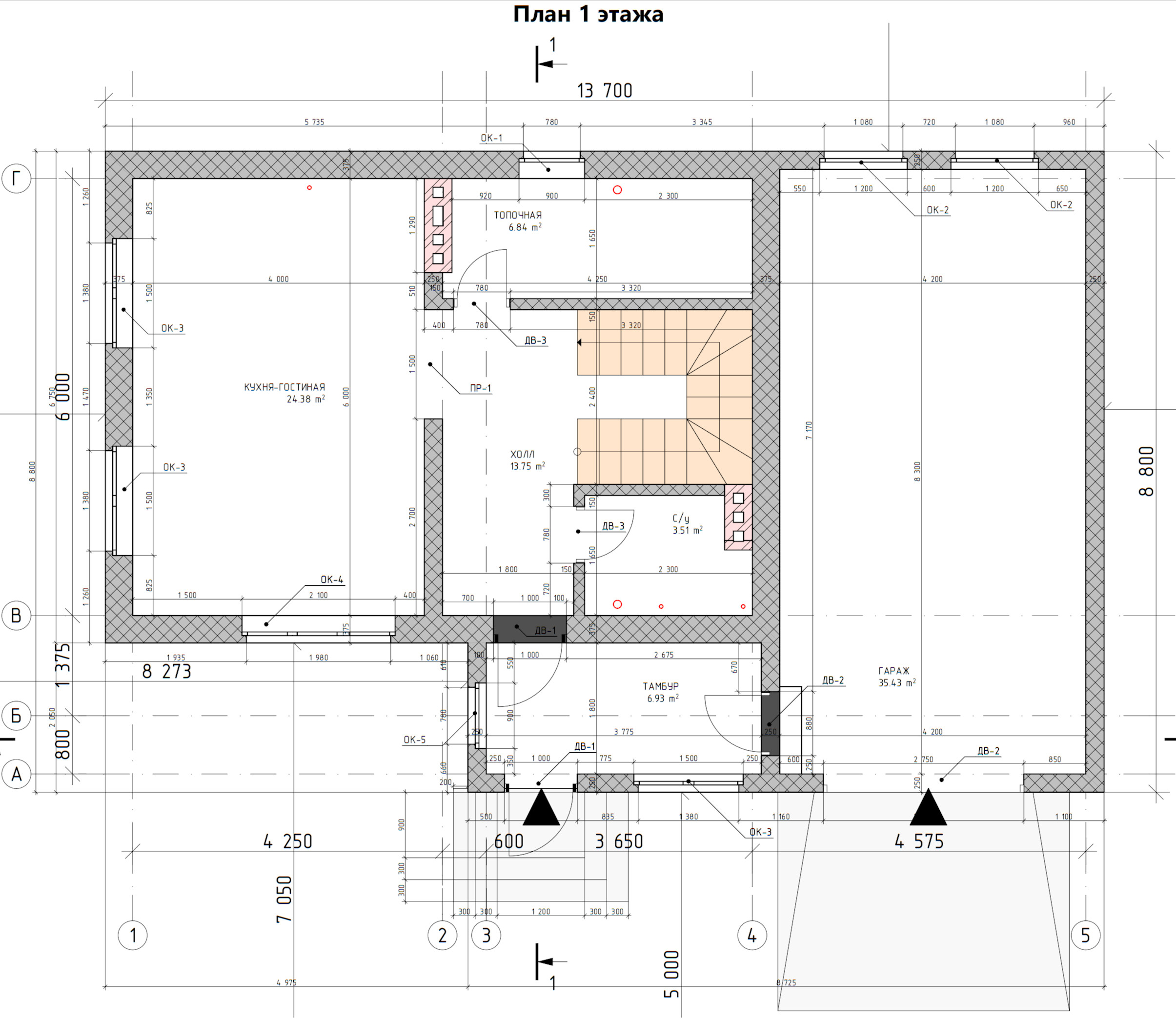 - Высота 1-го этажа: 3 м