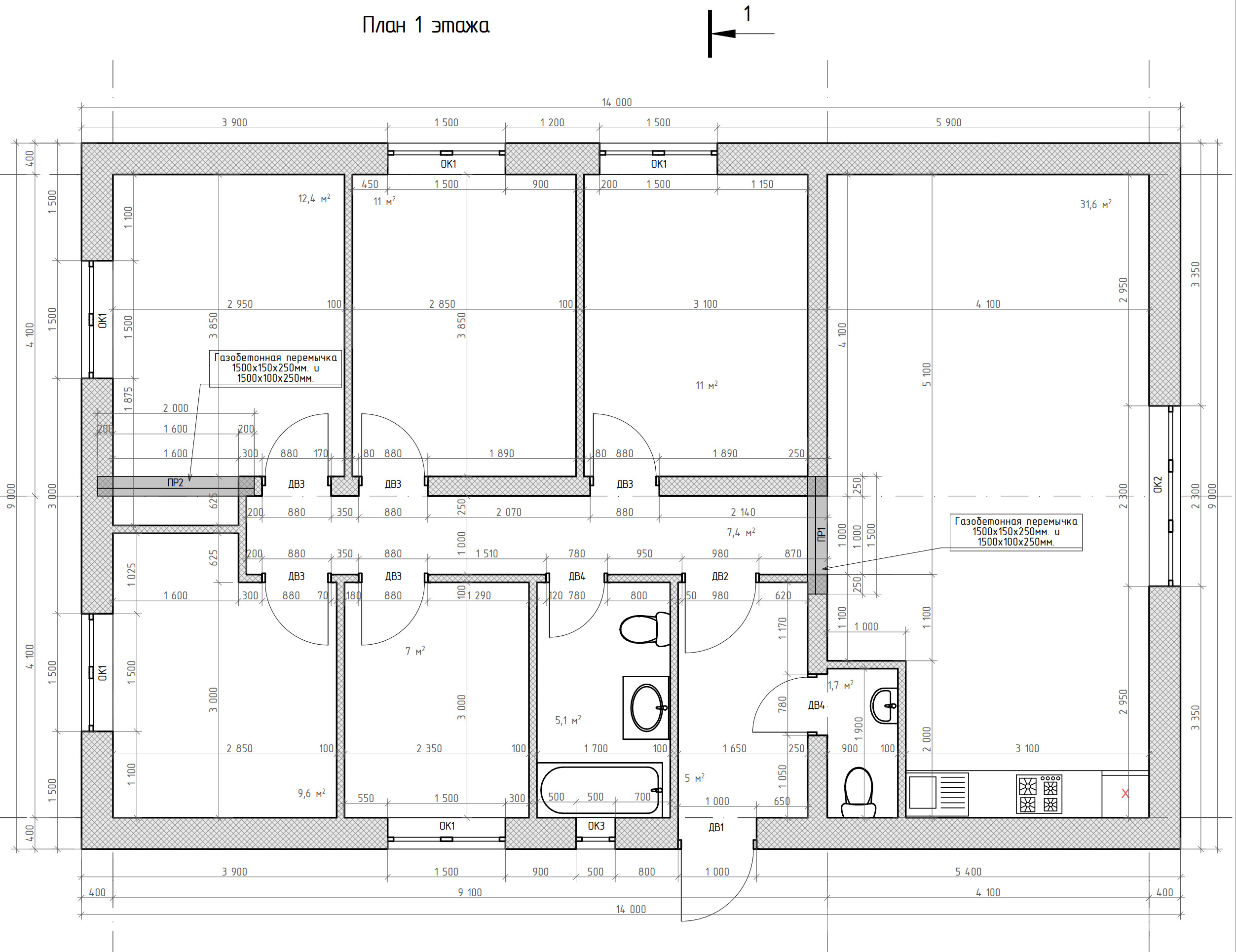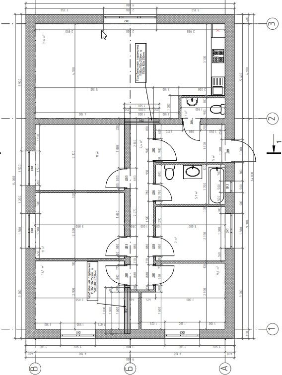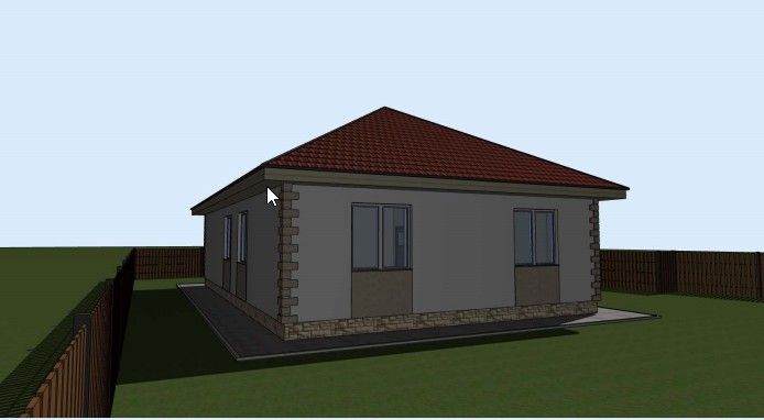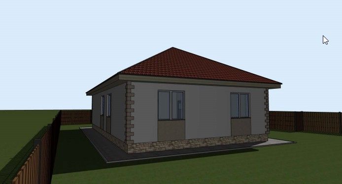 Готовый проект одноэтажного дома общей площадью 101,8 м². Стены дома могут быть выполнены из газосиликатных блоков или силикатного кирпича. По плану в доме пять спален, просторная объединенная кухня-гостиная.