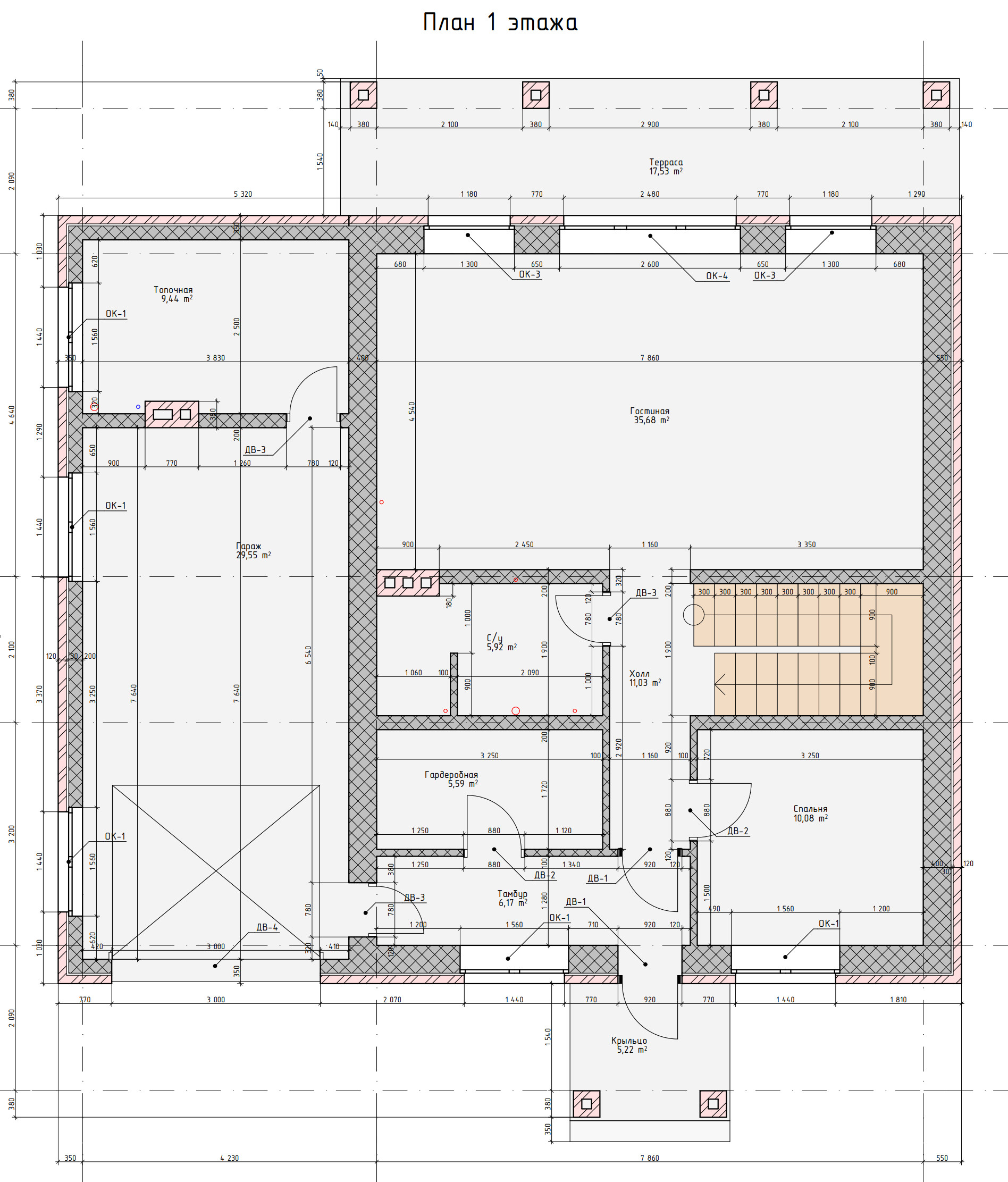 - Высота 1-го этажа: 3 м