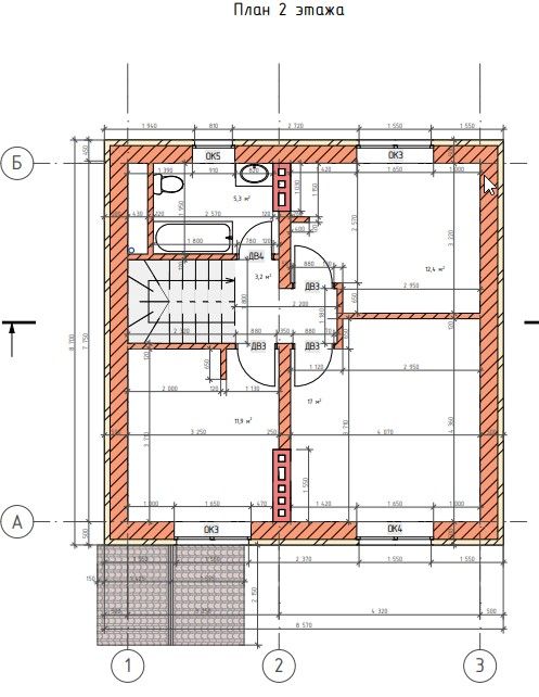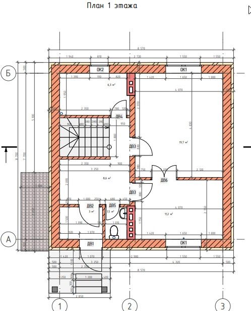 - Высота 1-го этажа: 3 м