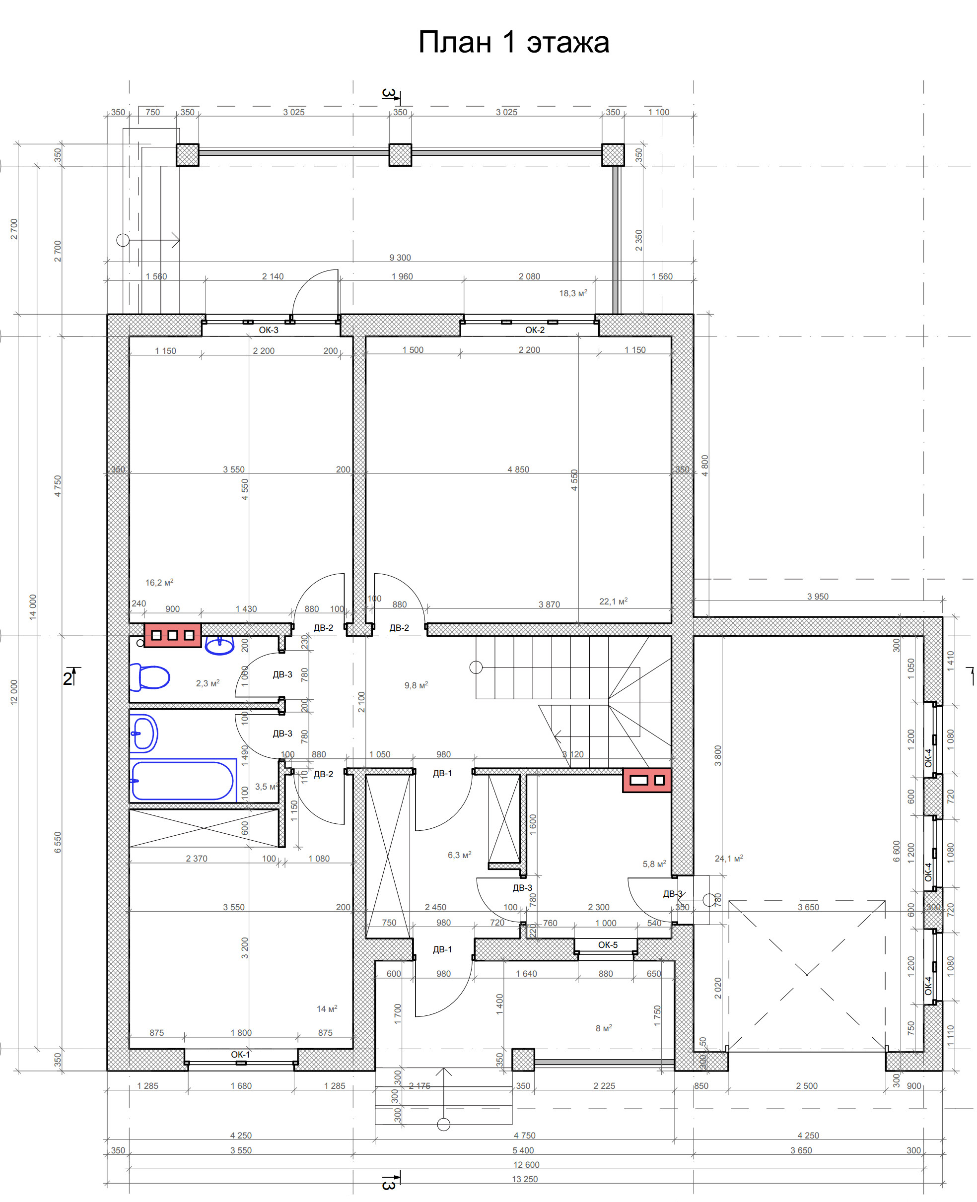 - Высота 1-го этажа: 3 м