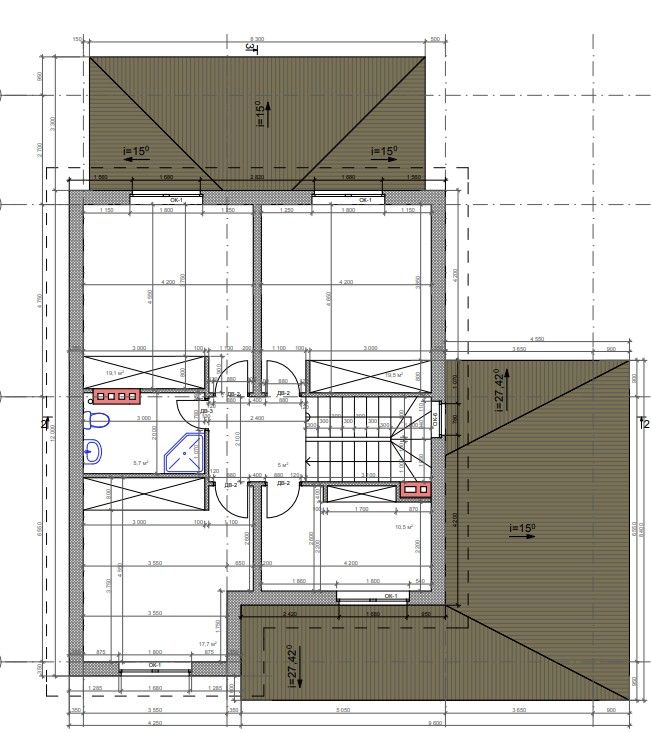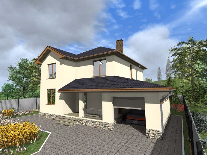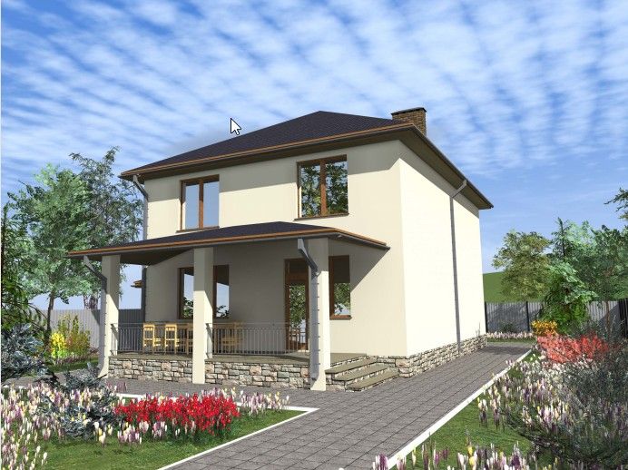 Готовый проект двухэтажного дома общей площадью 189,5 м². Стены дома могут быть выполнены из газосиликатных блоков или силикатного кирпича. По плану в доме четыре спальни, просторная кухня и гостиная.
