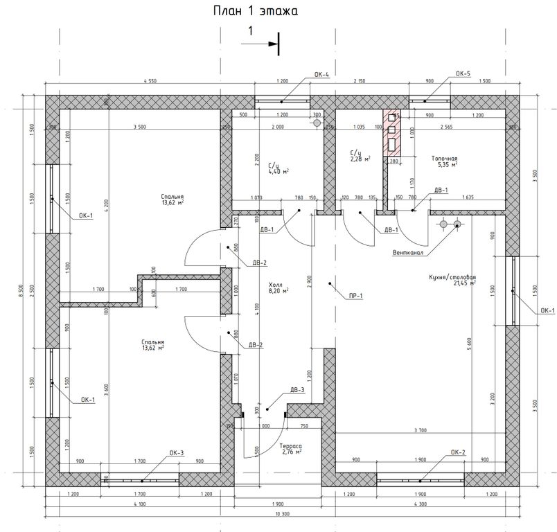 - Высота 1-го этажа: 3 м
