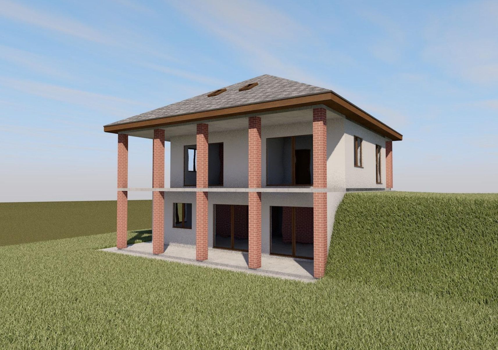 — Облицовка керамическим кирпичом.Окна и входная дверь