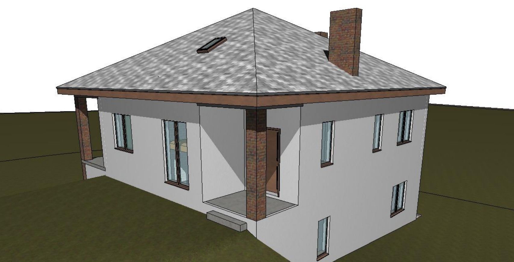 — Отделка фасада декоративной штукатуркой.Окна и входная дверь
