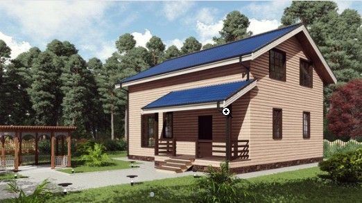 Готовый проект двухэтажного дома общей площадью 145 м² для строительства по каркасной технологии. По плану в доме прихожая, кладовая, бойлерная, два санузла, ванная, кухня-гостиная, гардероб и четыре спальни.