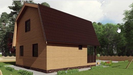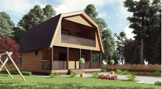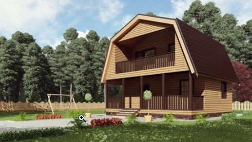 Готовый проект двухэтажного дома общей площадью 60 м² для строительства по каркасной технологии. По плану в доме крыльцо, холл, санузел, кухня, гостиная, три спальни и балкон.