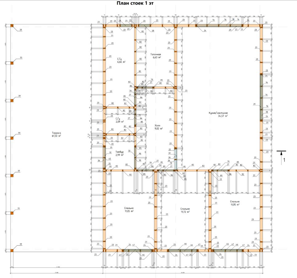 - Высота 1 этажа: 3 м