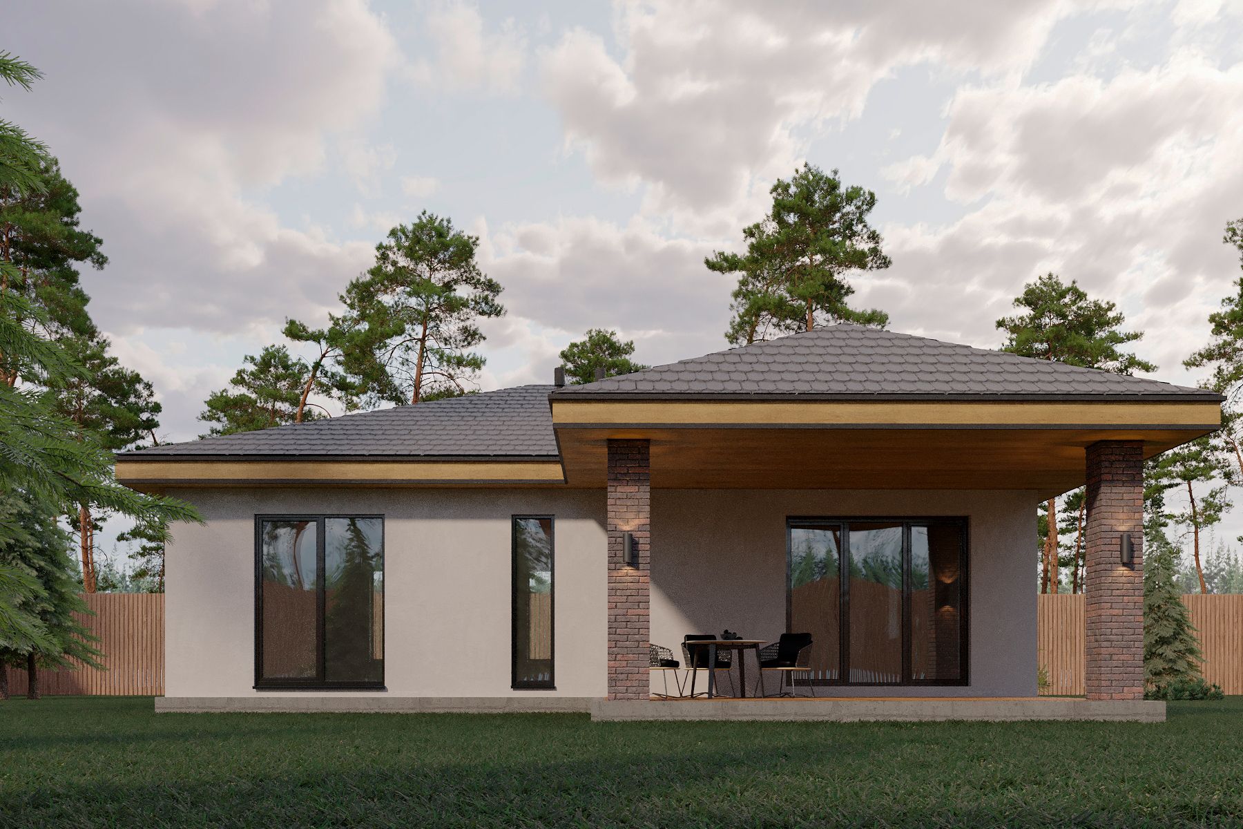 Внутренняя площадь дома93.88 м2Количество спален в доме3 спалМатериал стенКирпич/блокиКоличество этажей1 этажПроект с террасойестьСрок строительства4 мес. -